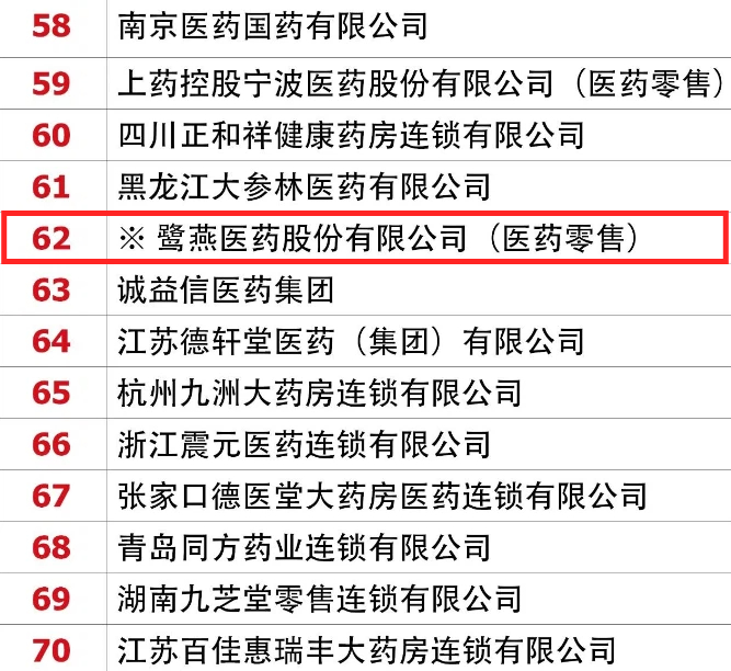 3月22日,《中國藥店》揭曉了“2025-2026年度中國藥店價值榜(100強)”。鷺燕醫(yī)藥股份有限公司(醫(yī)藥零售)連續(xù)六年登榜,排名第62位。